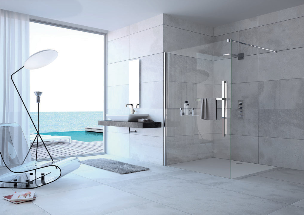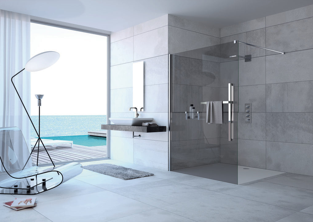 • Zasklení jednovrstvým bezpečnostním sklem tl 8 mm dle DIN EN 12150, volitelně s povrchovou úpravou HÜPPE Anti-Plaque pro snazší údržbu